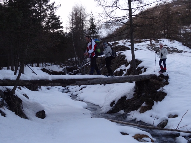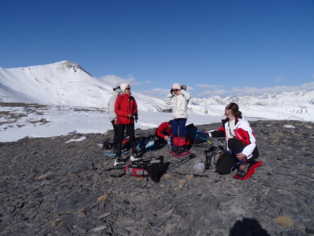 A noter la présence de 3 plongeurs aussi à l’aise en raquettes qu’en palmes :-), 3 ‘touchent à tout’ de l’asso (Laure, Tessa & Eric)